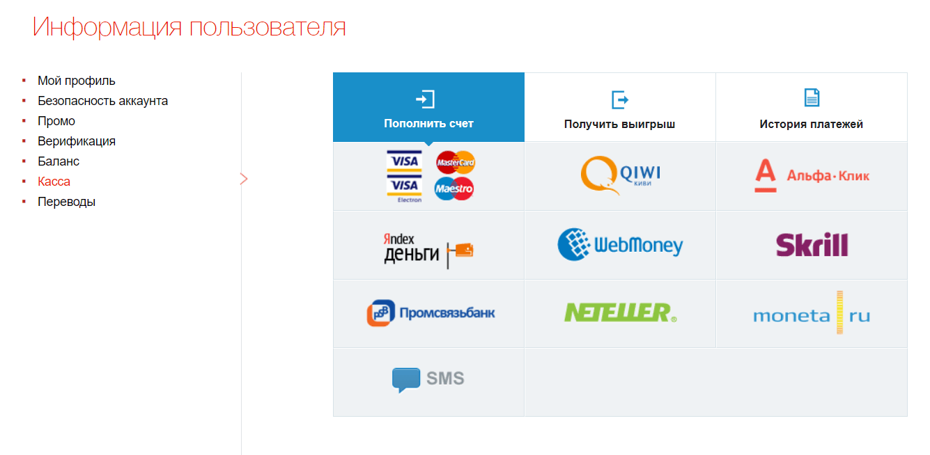 - Получить выигрыш. Перечислен список сервисов, с помощью которых выводятся деньги из покер-рума. Воспользоваться инструментами блока могут только верифицированные пользователи. Для кэш-аута применим только метод, использованный для внесения депозита.